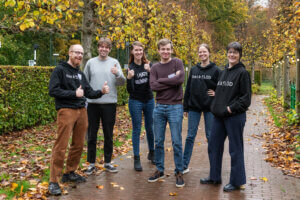 V.l.n.r. staand: Etienne Posthumus, Gertjan Filarski, Jauco Noordzij, Wouter Beek, Renate Kieftenbelt. Zittend: Marian Flach